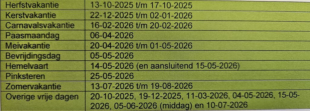Vrijdag | 8:30 – 12:00 | 12:45 – 14:45 |
